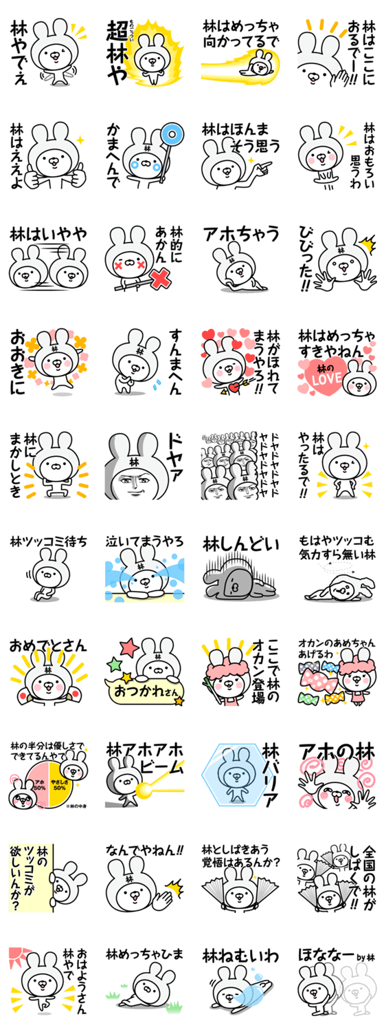 林さん用の名前で方言スタンプ。はやしさんが使える関西弁・大阪弁のうさぎです。ハヤシさんは是非どうぞ。