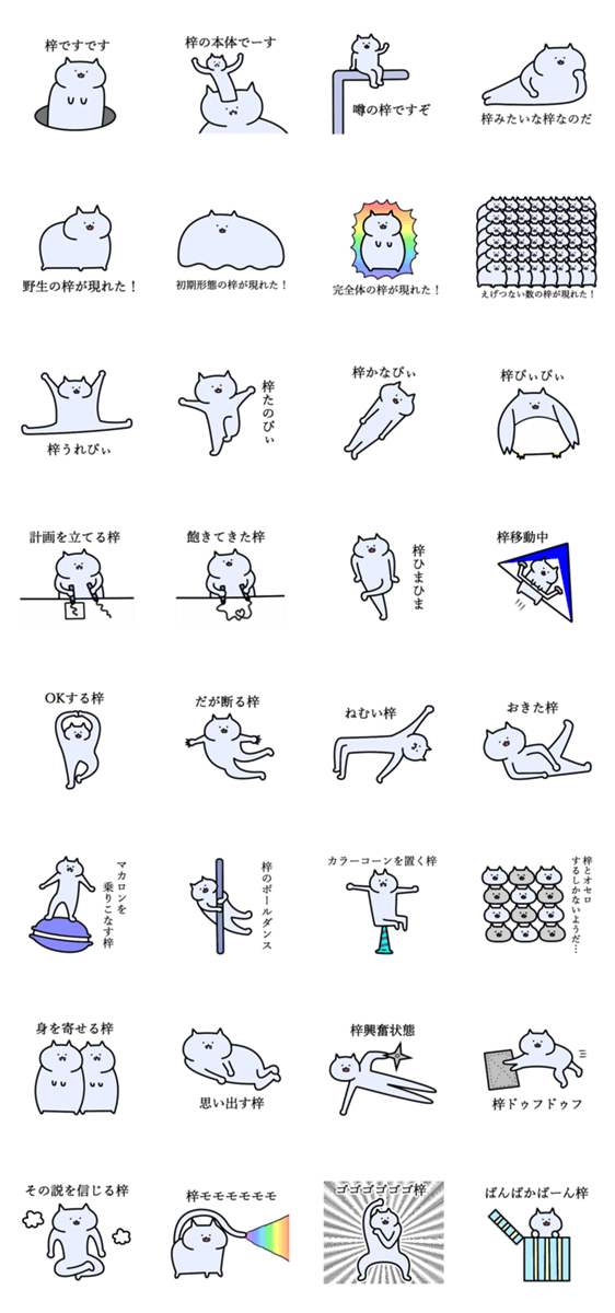 白ネコのあいうえお・・・ってるスタンプ