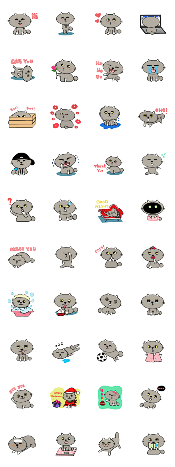 白ネコのあいうえお・・・ってるスタンプ