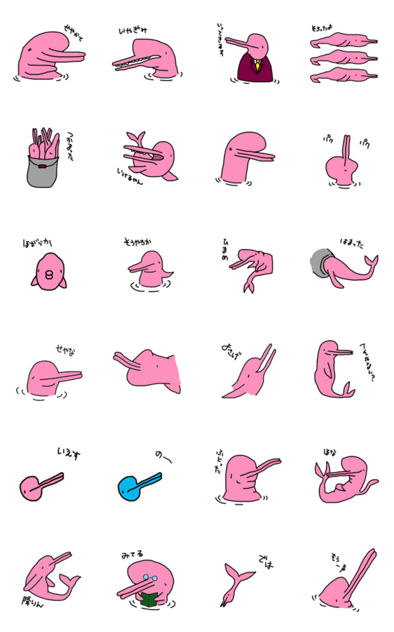 クジラ目の中でももっとも絶滅の危機に瀕しているカワイルカを応援するスタンプです。(スタンプはアマゾンカワイルカ)