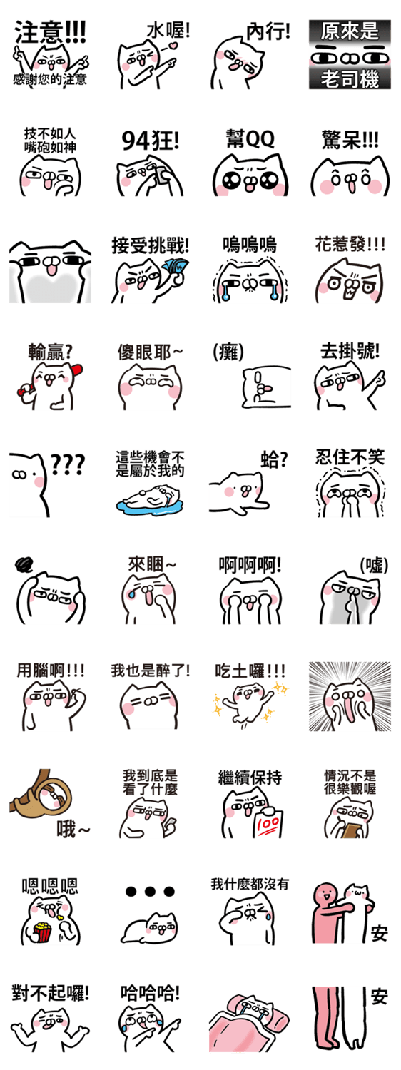 白ネコのあいうえお・・・ってるスタンプ