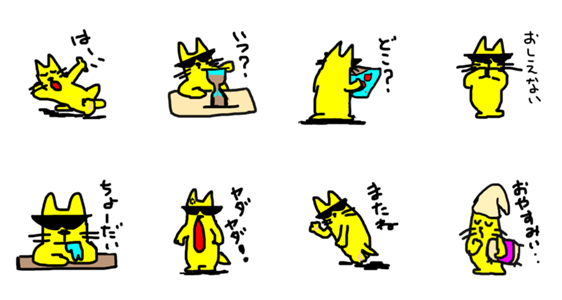 | スタンプ説明 | Yamaneko is a yellow cat. He is good guitar player. although he is scratching and sharpening claws,only. |