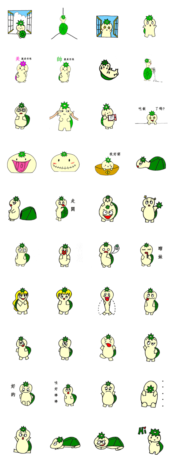 | スタンプ説明 | Turtle which wears a hat can pretend a kappa. |