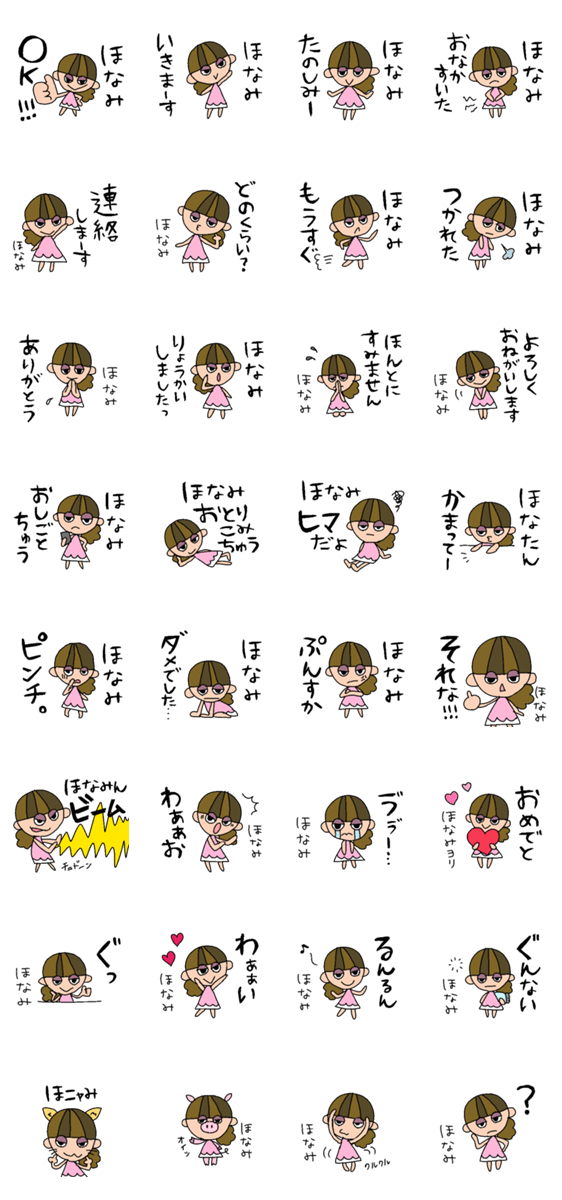 | スタンプ説明 | 全国のほなみちゃんにおくる、ホナミ専用スタンプ! おちかくのほなみちゃんへのプレゼントにも♪ |