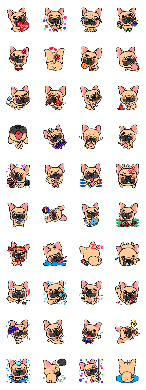 | スタンプ説明 | Charming and lovely dogs. Let's join the French Bulldog World. |