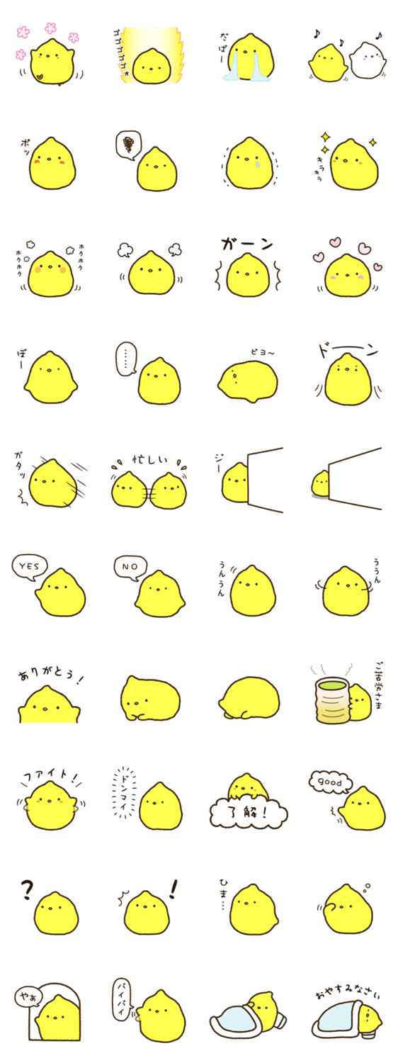 可愛いひよっこお豆「ひよこ豆」の第二弾スタンプです。シンプルでますます毎日使える日常使い基本編スタンプです。
