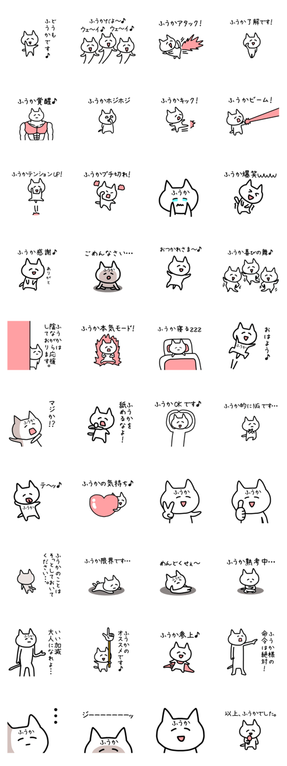 白ネコのあいうえお・・・ってるスタンプ