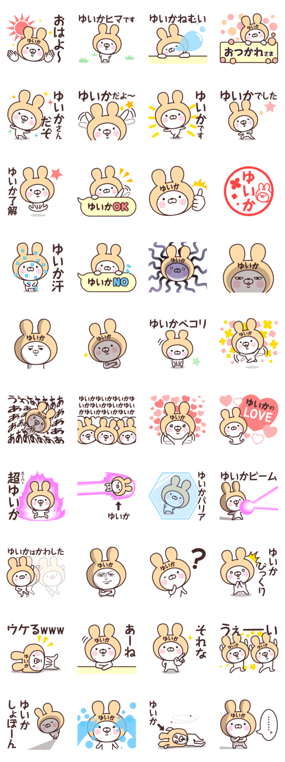 【ゆいか】の名前うさぎ -LINEスタンプマニア