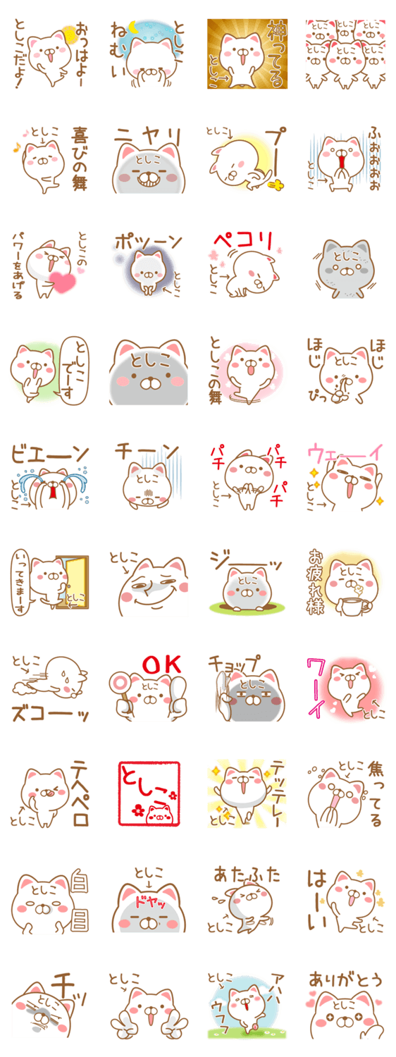 トシコさんが使うスタンプ。敏子,俊子,利子,俶子,倫子,冨士子,世子,仁子,冨志子,利志子,叔子,寿子,季子,富寿子,淑子など全国のとしこ専用スタンプ