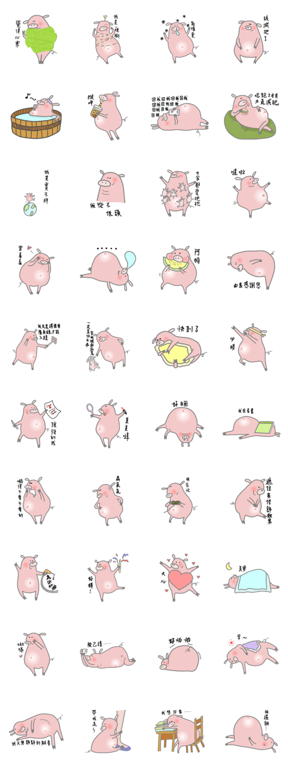 | スタンプ説明 | Little piggy is a fat and pink pig. |