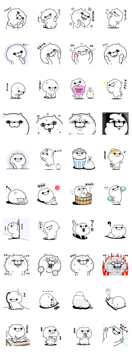 白ネコのあいうえお・・・ってるスタンプ