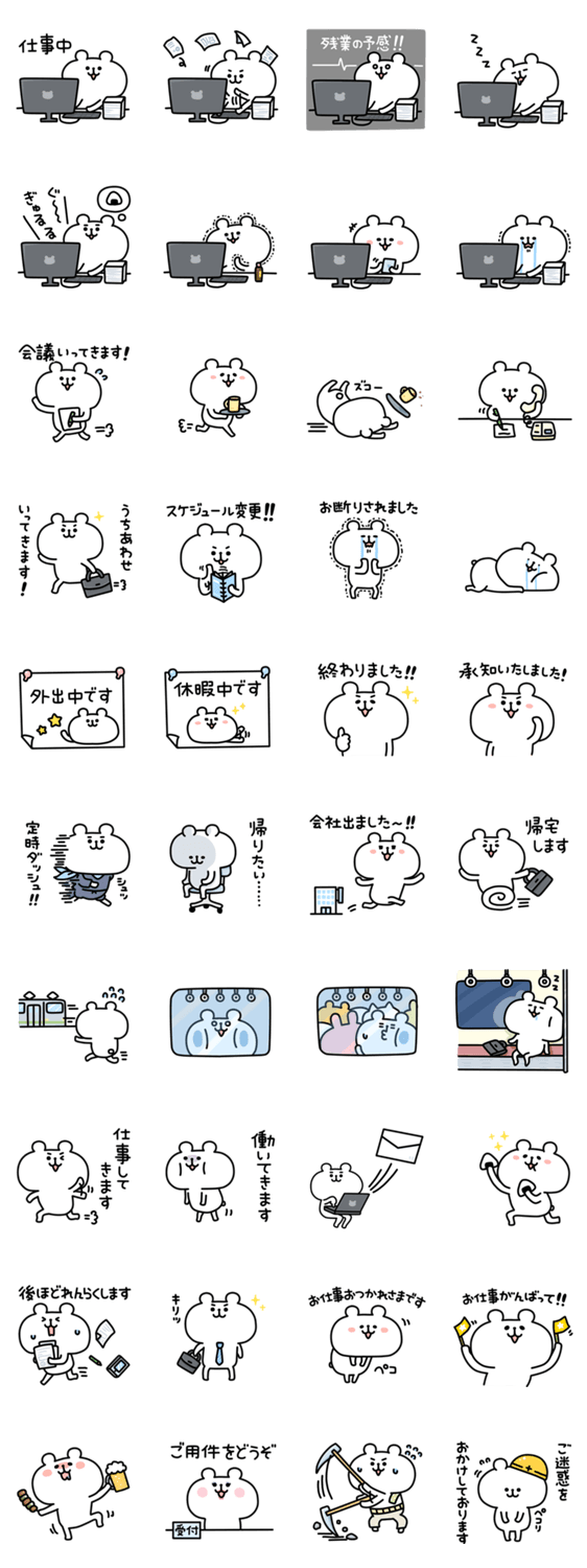 お仕事中に便利♪働くゆるくまさんのスタンプです!