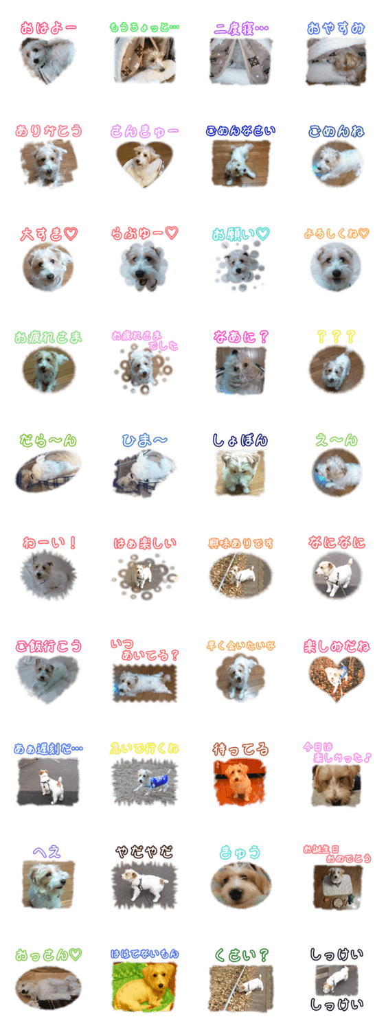 ラフコートのジャックラッセルテリア犬の写真スタンプです。 名前はショコラ。甘えんぼの雄犬です。 日本語バージョン。