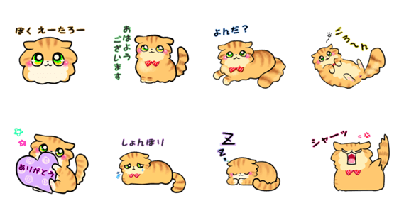 スコティッシュフォールドのえーたろースタンプ。 みんなに愛されて可愛がられています。
