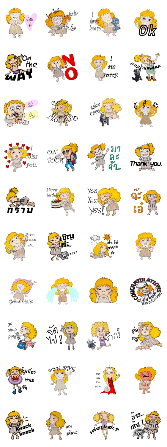 | スタンプ説明 | A golden-hair girl.She is happy,nice,and,naughty. |