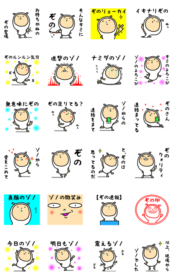 前園/岡園/園田/原園/西園/北園/川園/堀園/池園/蔵園/中園/堂囿/窪園/内園/宮園さんにおすすめの脱力系ゾノスタンプ。ネコやウサギのスタンプに飽きたらどうぞ