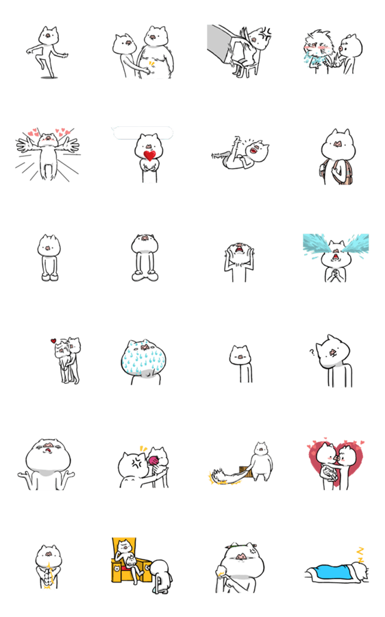 白ネコのあいうえお・・・ってるスタンプ