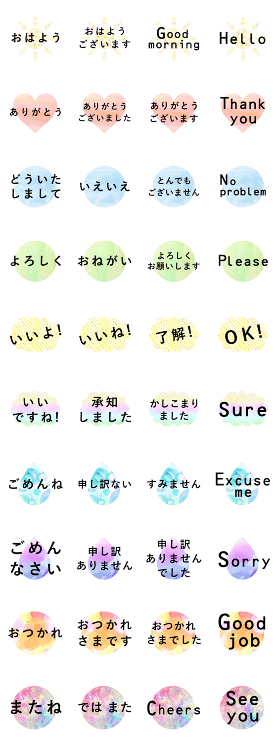 水彩 背景 シンプル スタンプ テキスト 敬語 日常 会話 英語