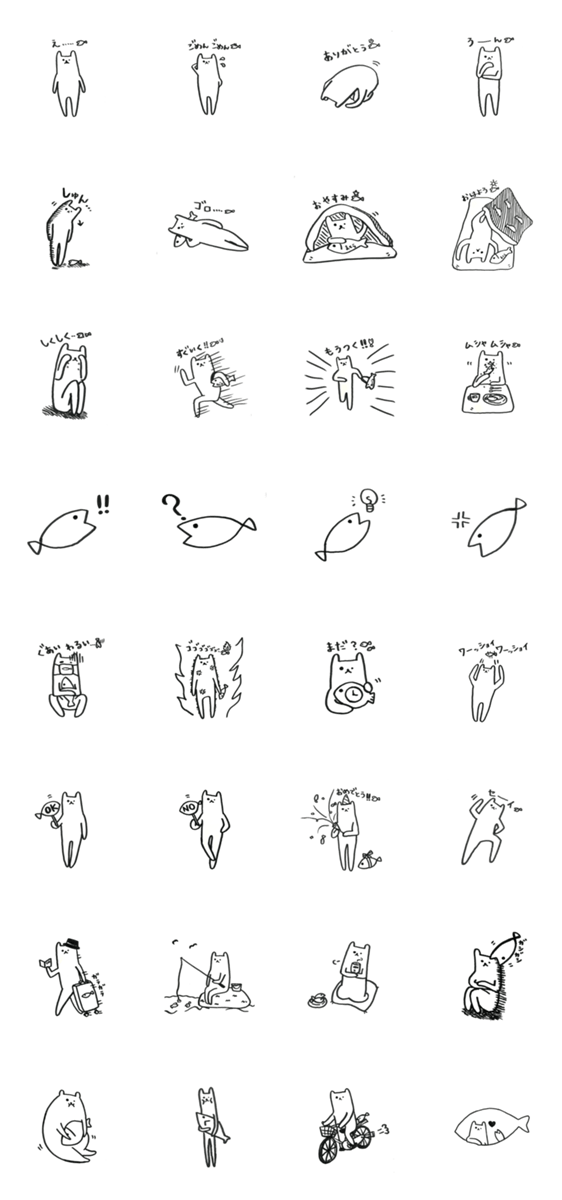 しろくまとさかなの日常にも使えるゆるーいスタンプです。