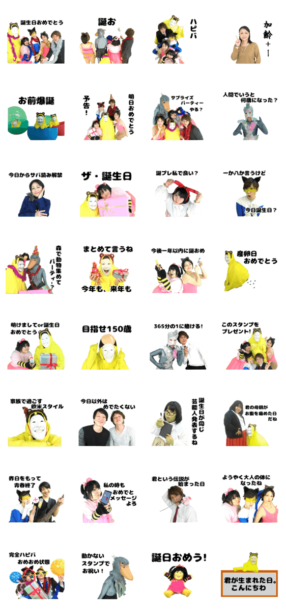 ついに出た!あのオジニャンとその仲間達の実写スタンプ。誕生日専用!これさえあれば友達彼氏彼女上司先輩後輩親戚他人まで誕生日お祝いLINEは怖くない!365日任せなさい!