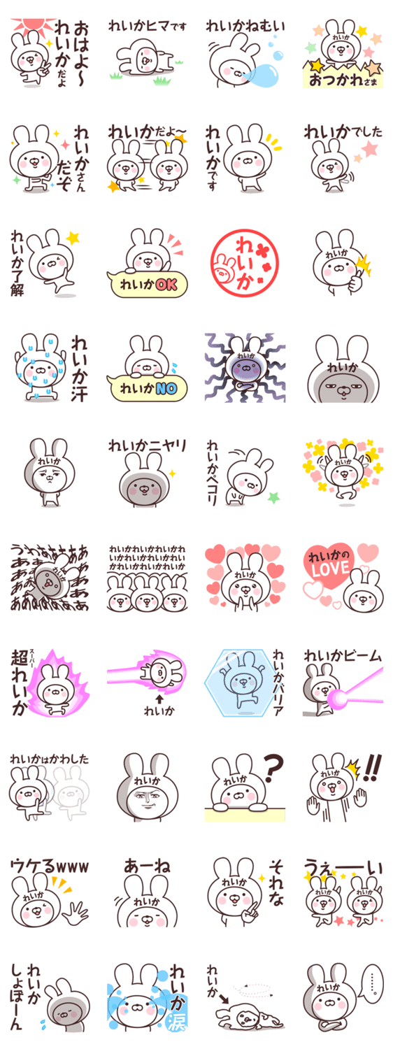 【れいか】の名前うさぎ -LINEスタンプマニア