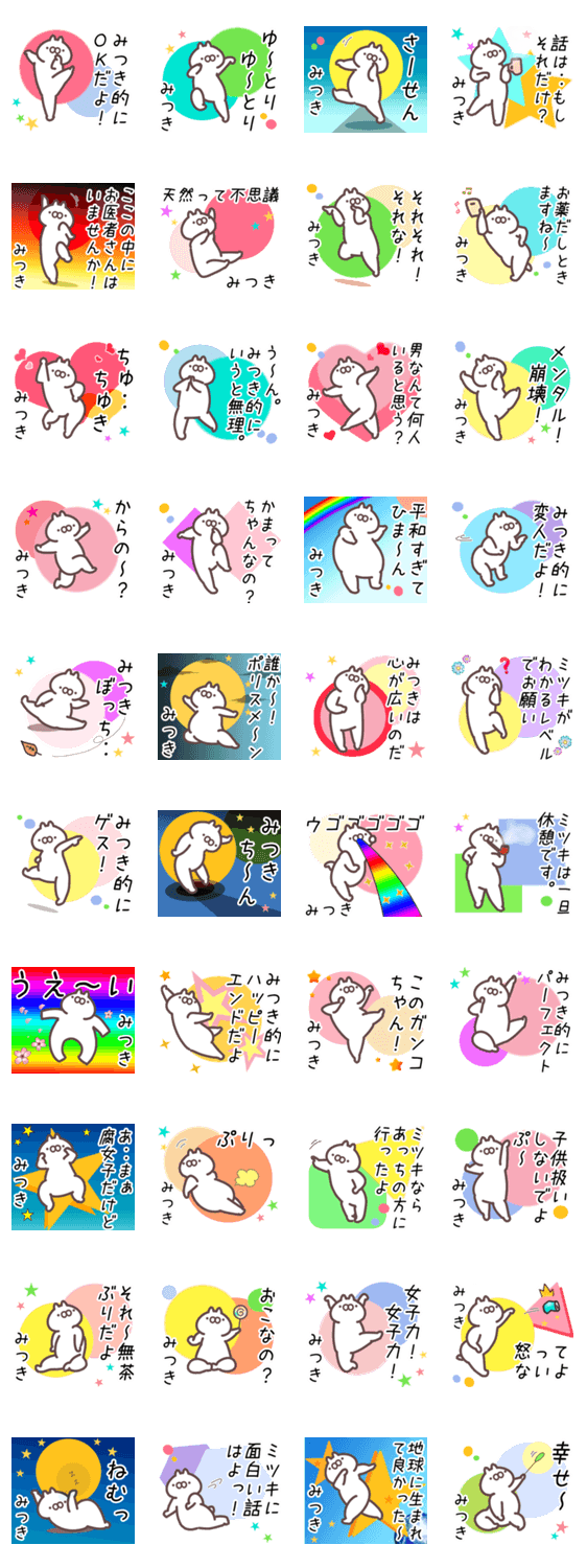 ミツキ(観月、美月、見槻、水月、聖月、三月、海月、深月、瑞月、瑞記、実築城、己月、巳月、未月、彌月、箕月、壬月、実津樹)等が使用する為の、みつき専用名前スタンプ