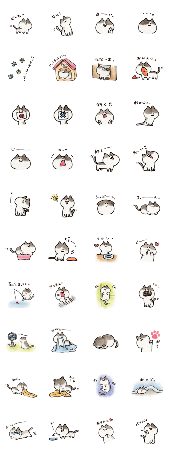 水彩で描いた可愛いねこのスタンプです。猫好きな人にぜひ! ねこのモデルはうちのねこです。