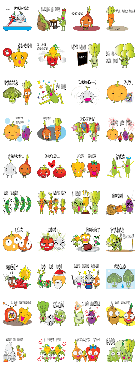 | スタンプ説明 | Enjoy this funny vegetables LINE sticker set (EN) |