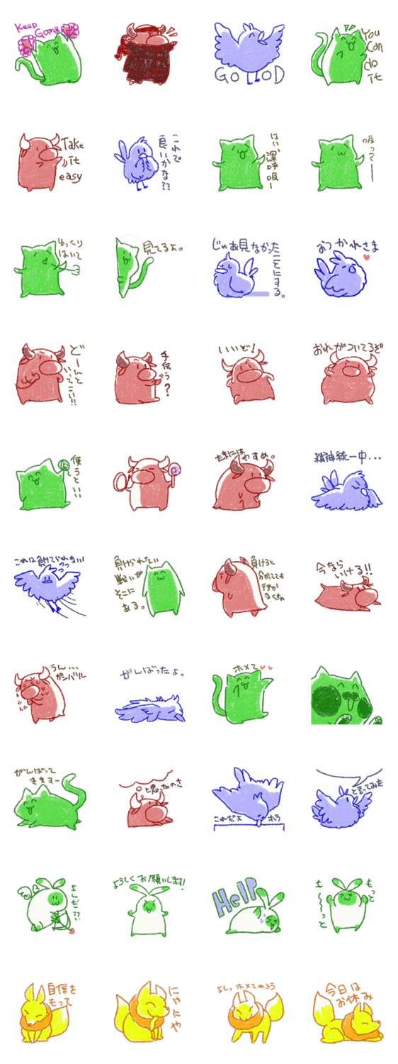 | スタンプ説明 | 頑張る人を応援したり、ときには頑張ったりします |