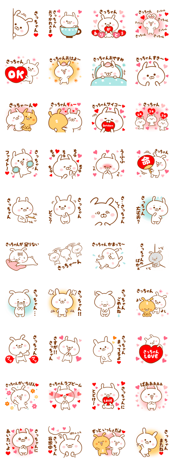 さちこ/さちえ/さつき/さとみ/さなえ/さおり/さえ/さき/さとし/さとる/佐藤等、さっちゃん、さっくんに送る名前・あだ名スタンプです。恋人、夫婦、友達に使ってね♥