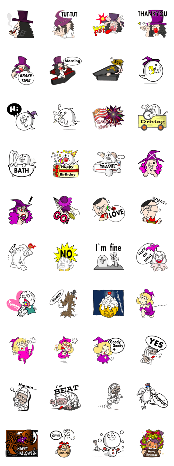 | スタンプ説明 | ハロウィンモンスター達がハロウィンはもちろん、日常の会話からクリスマスやHappy New YearまでAll TimeにあなたのLINE LIFEをRockにPOPに彩ります。 |