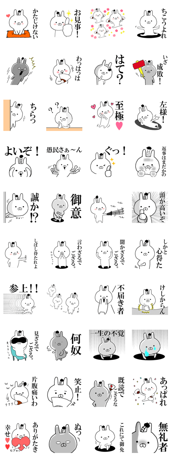 武士語多目のまげうさぎサムライのスタンプです。 日常トークにどうぞ♪