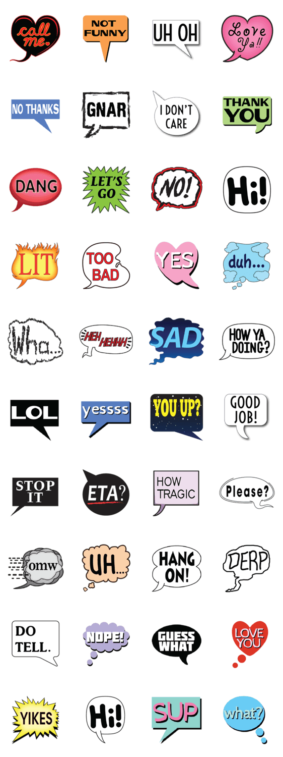 | スタンプ説明 | Tell your friends how you really feel with these awesome stickers. 40 unique & cute phrases to grab all the attention! Download today and start communicating! |