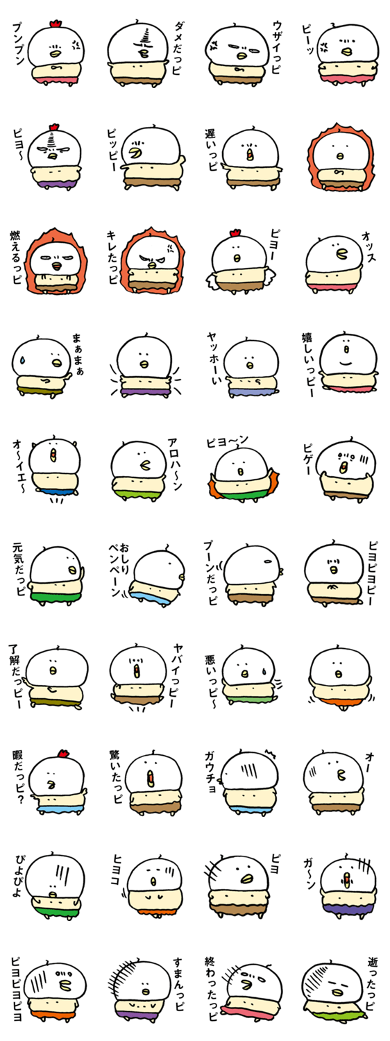 のんびり生きようよ。スローライフを楽しむ小太りの鳥男「こぶトリくん」のぷよぷよスタンプ。