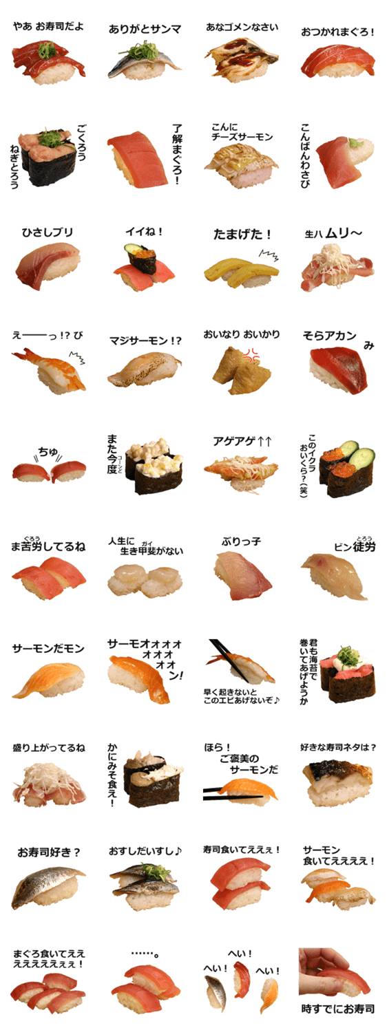 寿司の写真で作った実写スタンプです。飯テロにもどうぞ。お寿司最高!40個入り。