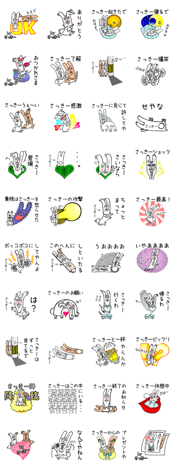 名前/あだ名が【さっきー/サッキー】のスタンプです。川崎/かわさき/山崎/やまさき/森崎/もりさき/大咲/おおさき・・〇崎さん専用ゆるかわ関西弁ウサギのおっさんです