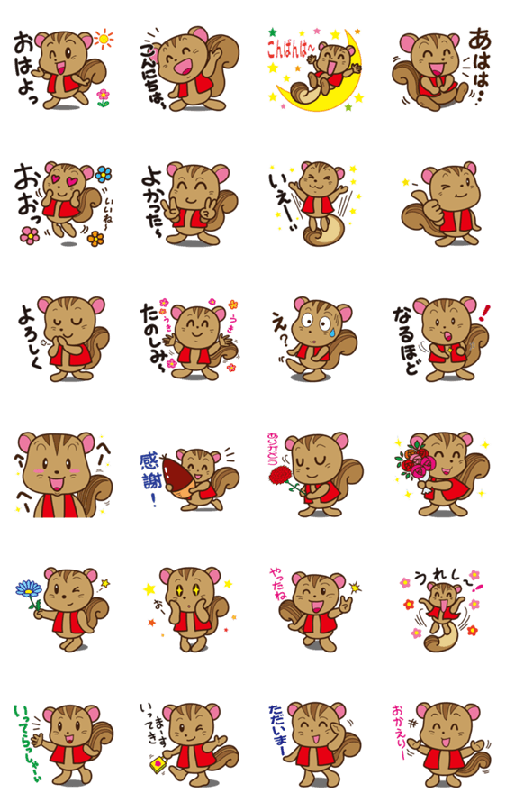 かわいいシマリスのスタンプです。 日常的によく使う言葉を集めました。