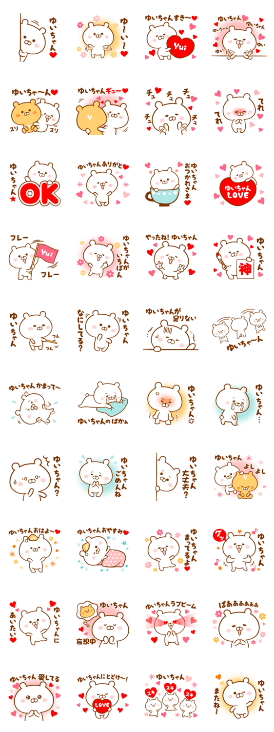 ゆい/ゆいか/ゆいな/ゆいこ/ゆいの/結/唯/優衣/由依等、ゆいちゃんに送る名前・あだ名スタンプです。大好きな恋人、家族、友達に気持ちを伝えてね♥