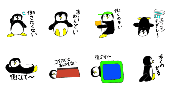 スタンプ説明 シュールなペンギンのやる気のなさがキモです