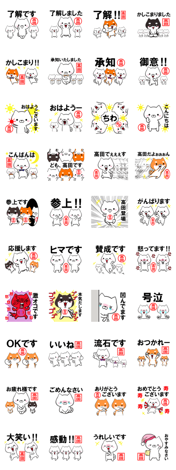 いぬのスタンプで、高田(たかだ・たかた・タカダ・タカタ)さん用です。