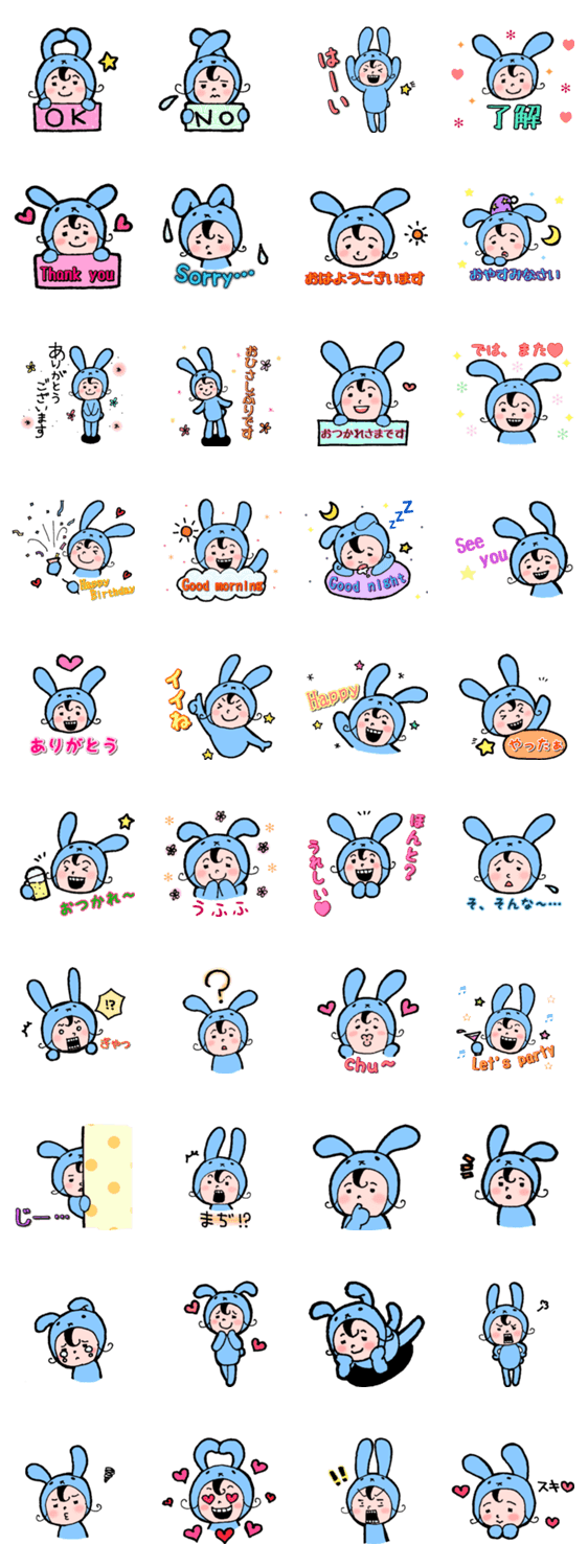 うさぎの着ぐるみを着た、りつ君の日常で使えるスタンプです♡