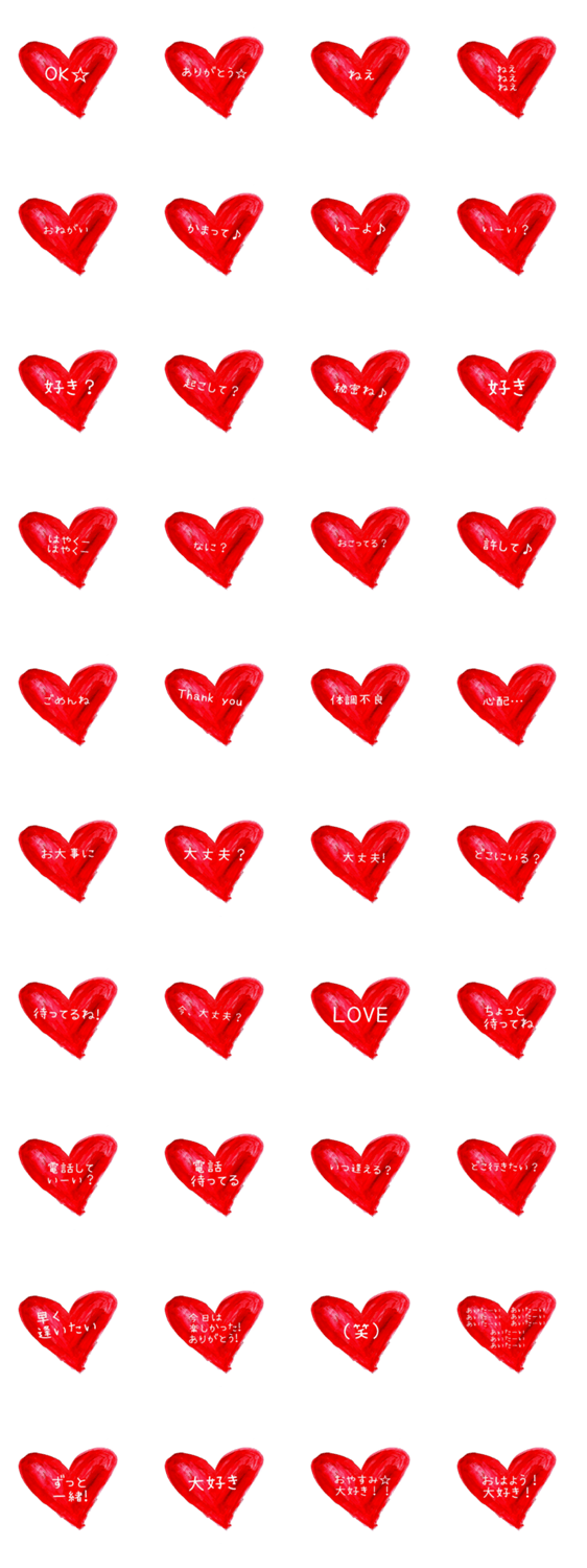 カップル、恋人が2人で使えるスタンプにしました。絵の具で手描きしたのでハートの赤は、本物のハートです。