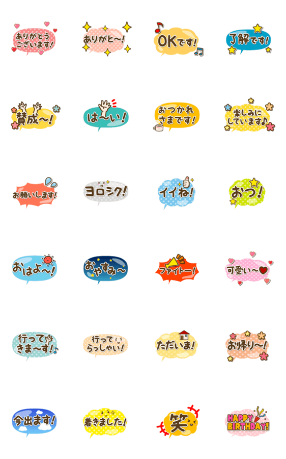 ポヨヨン!と飛び出す動きが楽しい♪吹き出しスタンプです。