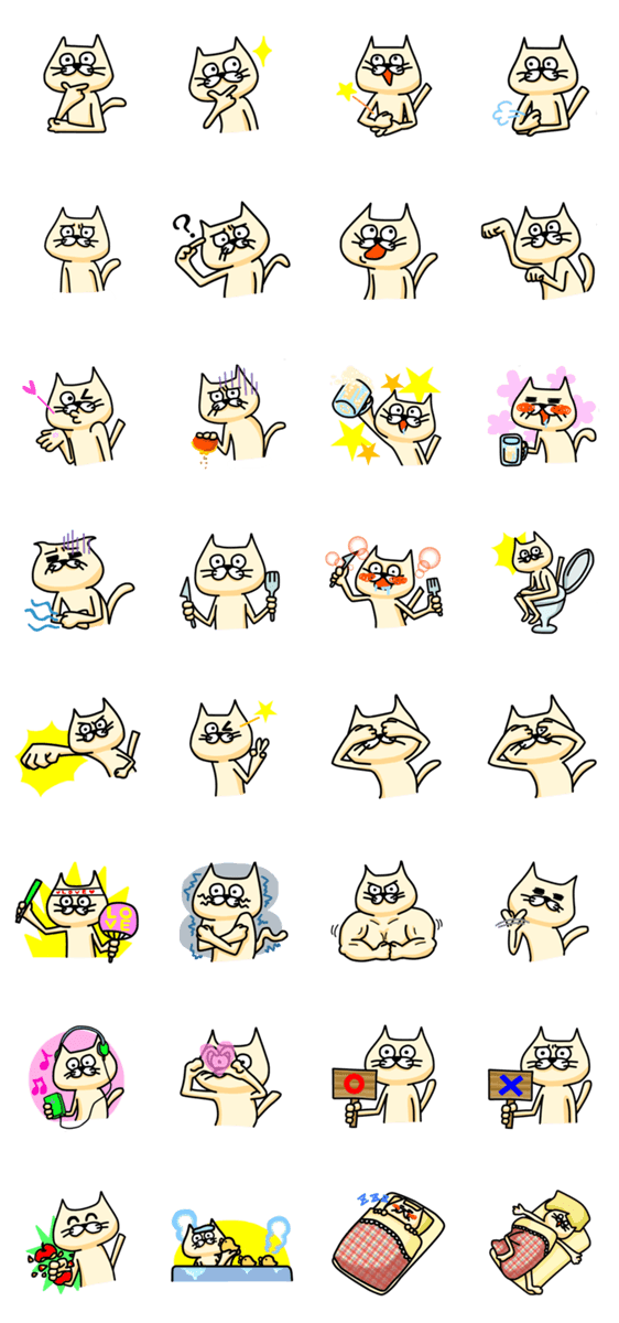 ぶさいくな猫ちゃんの1日がおくれます。言葉がなく、表情のみなので使いやすいです。