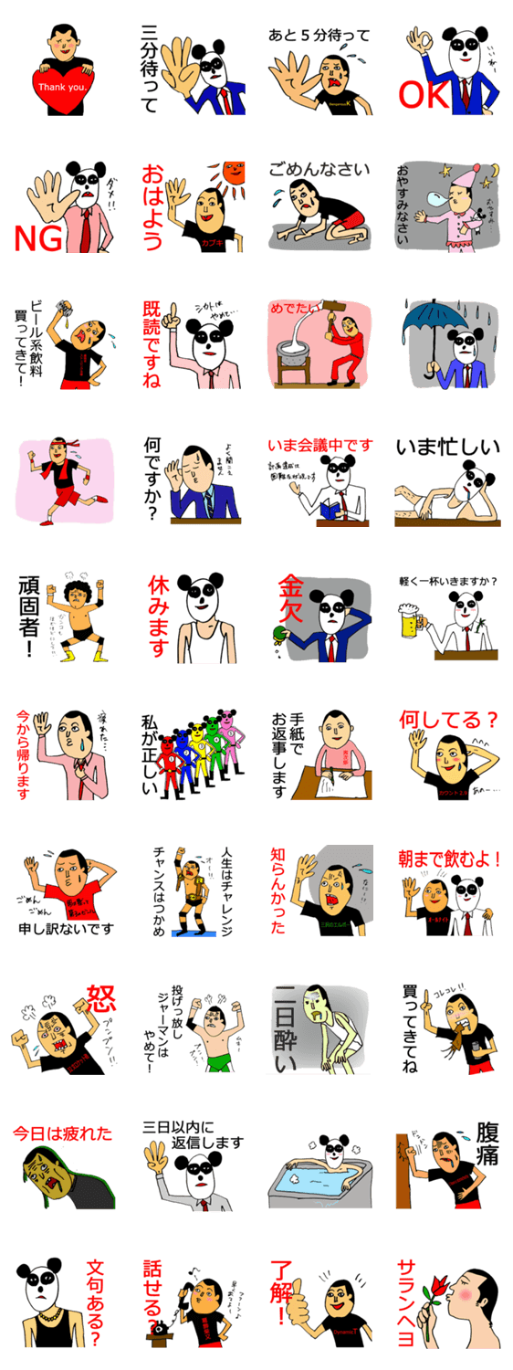 パンダさんとボクは友人です。友人同士や夫婦で利用できる日常会話のスタンプです。