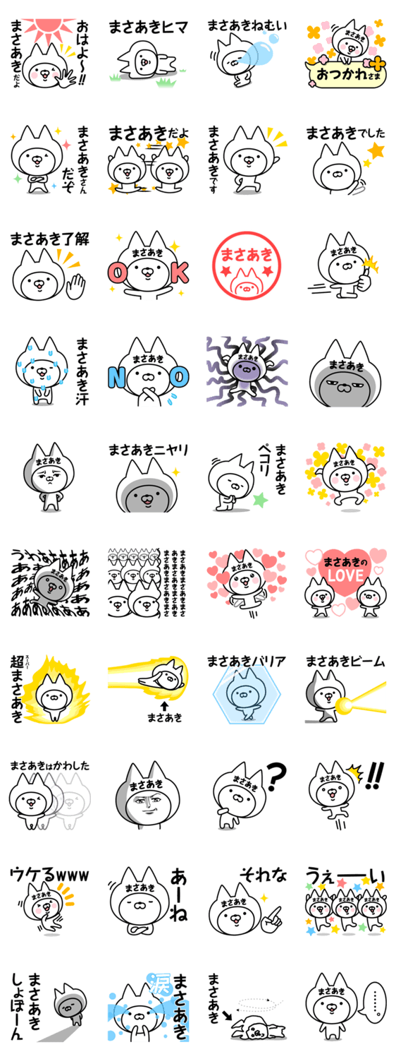 まさあきさん、まさあき君が使える名前スタンプです。マサアキさんは是非どうぞ。