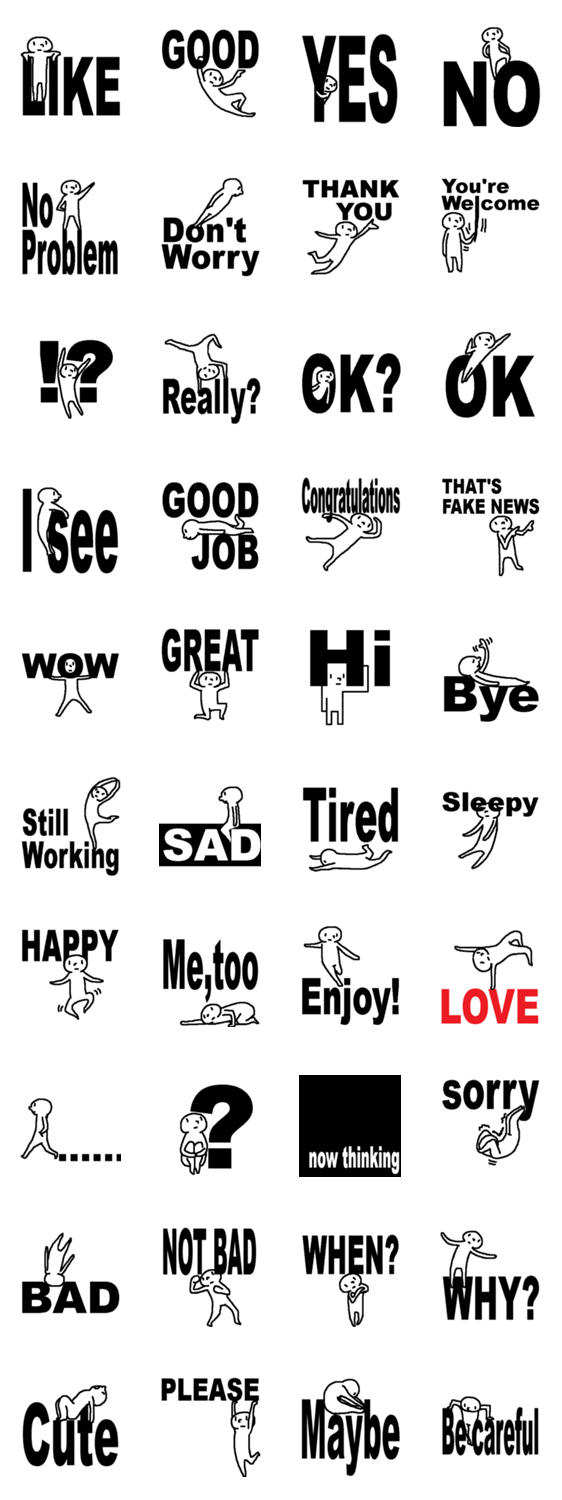 | スタンプ説明 | 簡単な英語で遊んでいる人のスタンプです。グローバルなコミュニケーションにもどうぞ。 |