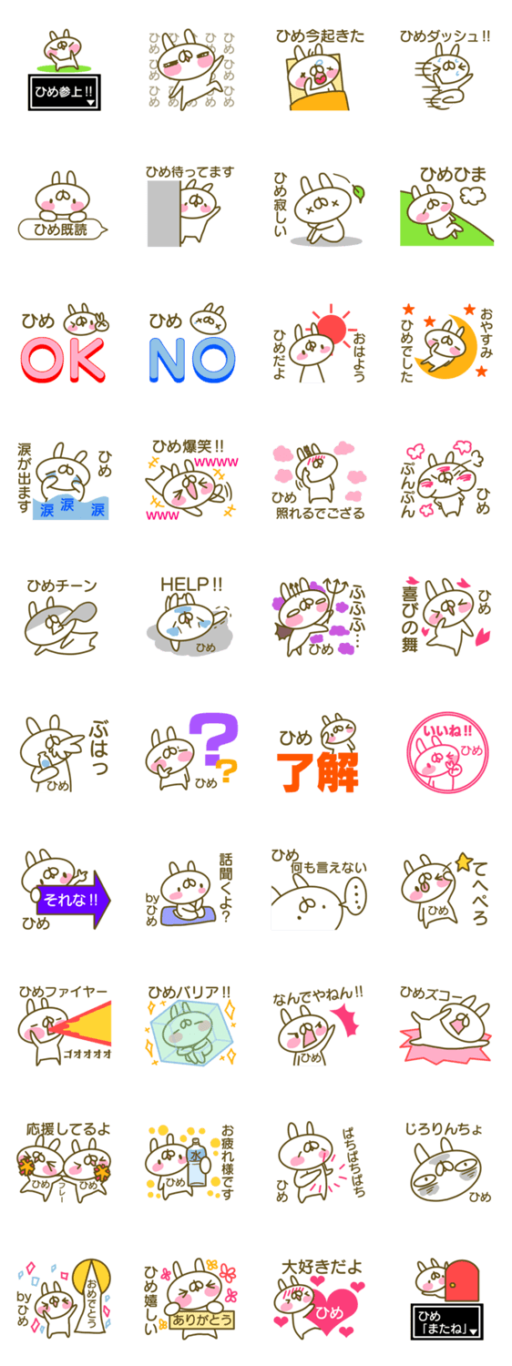 (姫、媛)ひめさんのお名前スタンプ。ひめさんが友達や知り合いに送るスタンプ