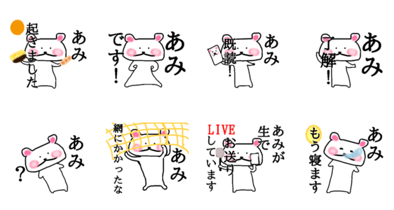 「あみ」さんが使うくまスタンプ、基本セット。Ami、アミ、亜美、麻実、阿弥、愛海さんなどに。