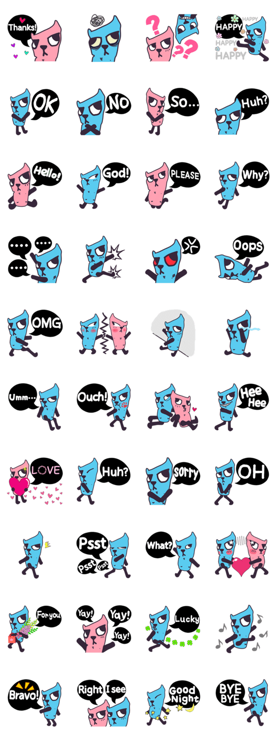| スタンプ説明 | The dog couple who always play it cool. They might look cool on the outside, but they're actually very passionate! |